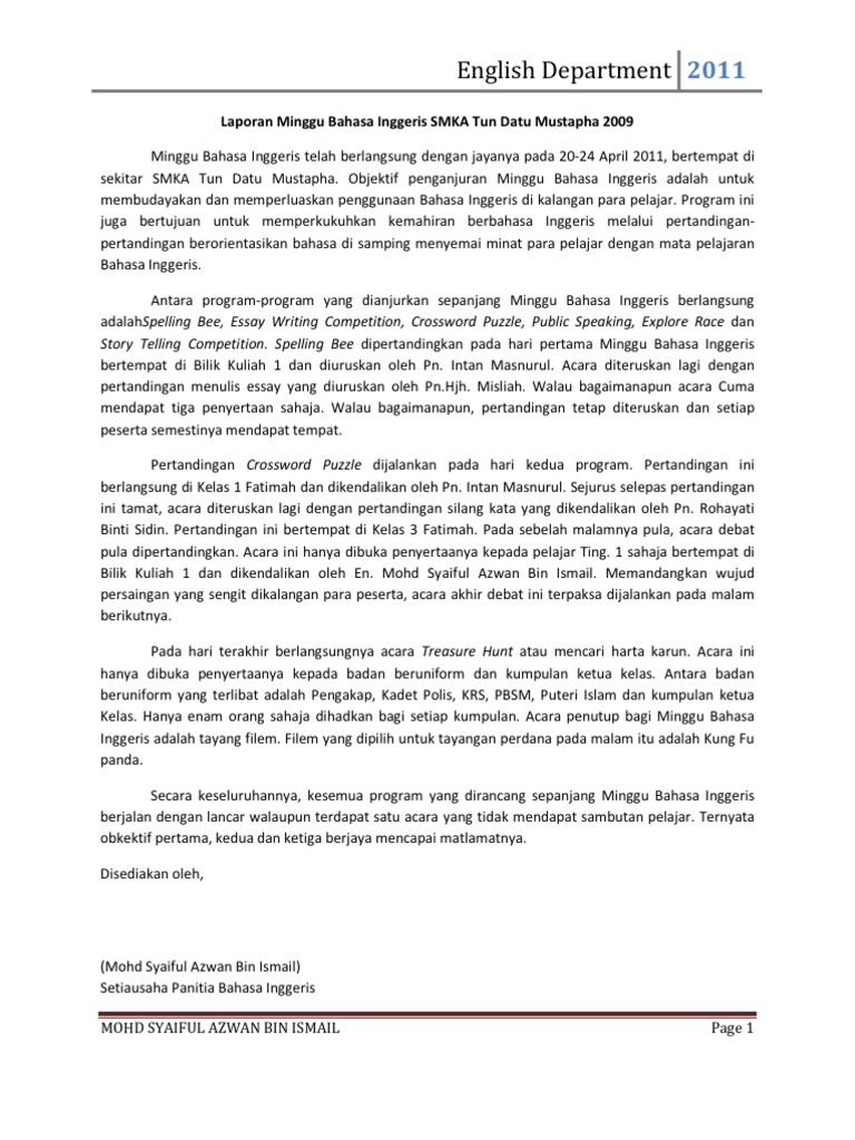 Laporan Minggu Bahasa Inggeris Smka Tun Datu Mustapha 2011 Pdf